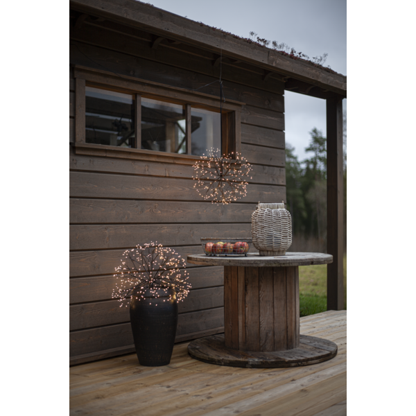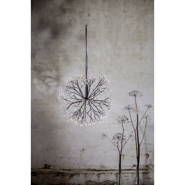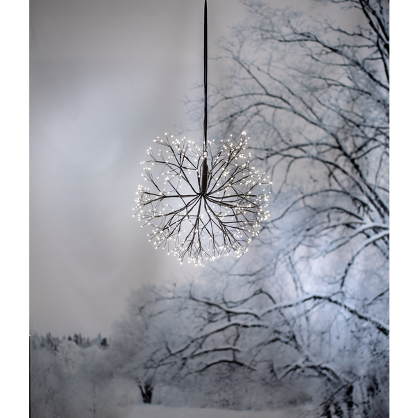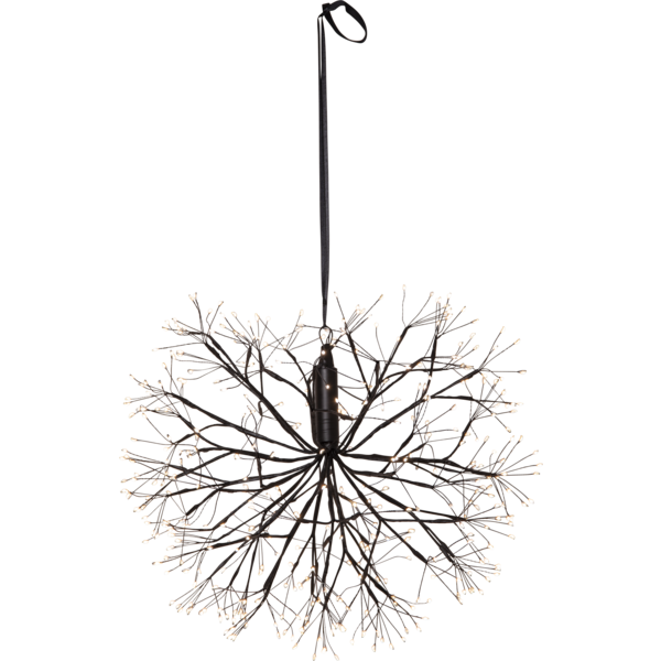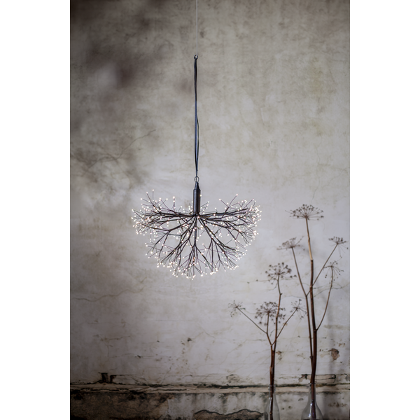 Hängende Dekoration für den Innen- und Außenbereich. 432 warmweiße LEDs verteilt auf 24 schwarze Zweige,