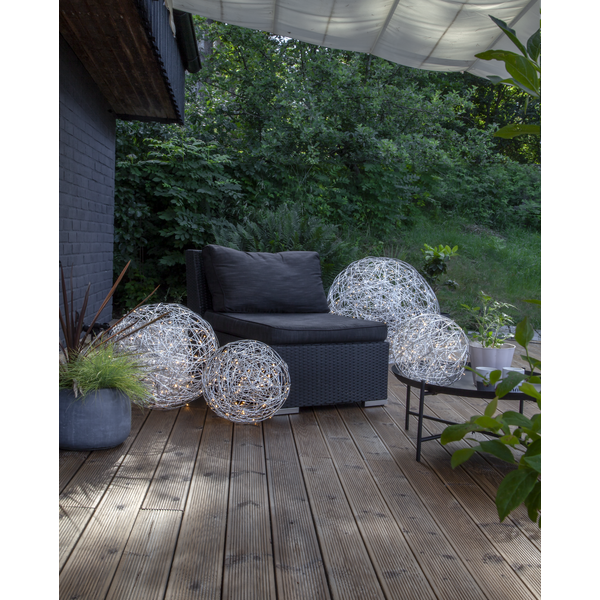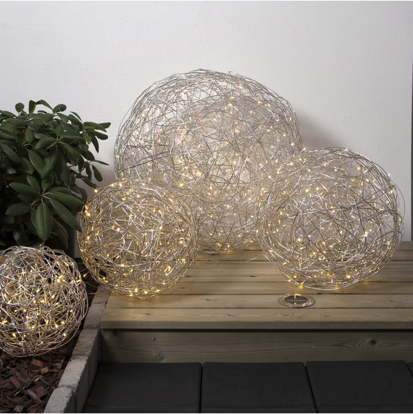 Hübsche silberfarbene Version der Trasselkugel für die Dekoration im Innen- und Außenbereich.