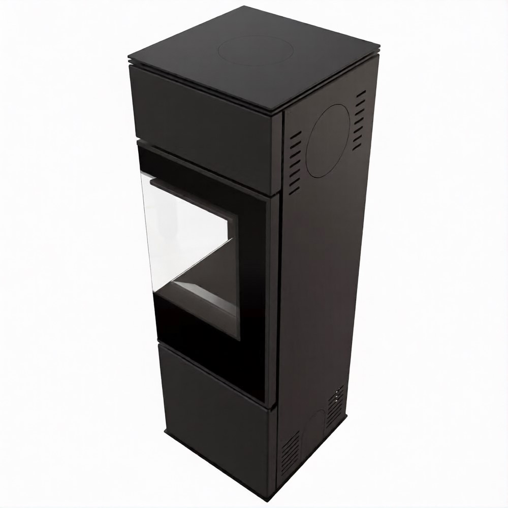 – dekoratives Glas vom Typ GLASS mit ästhetischem schwarzem Dekor verleiht dem Kaminofen ein elegantes Aussehen